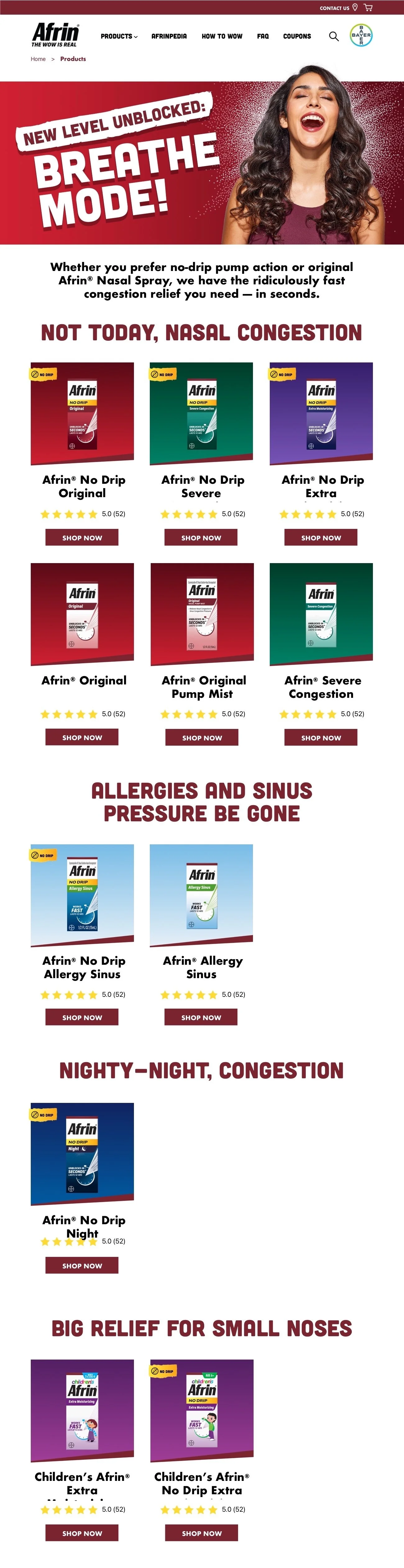 Redesign the Afrin.com website to reflect a refreshed brand identity and improve overall user experience.