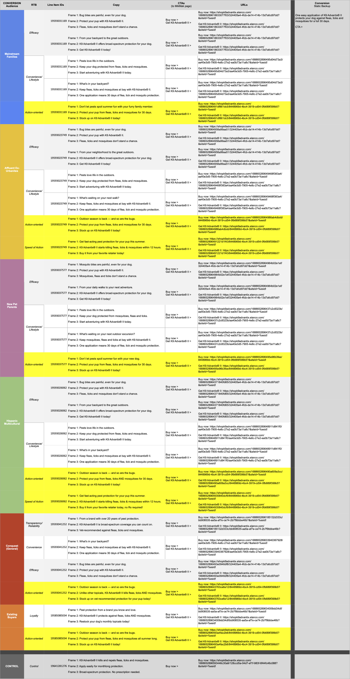 Designed dynamic ads with content optimizations using Google Web Designer for all Elanco pet brands, including K9, Advantage, and Seresto. An example for the K9 audience is shown here.
