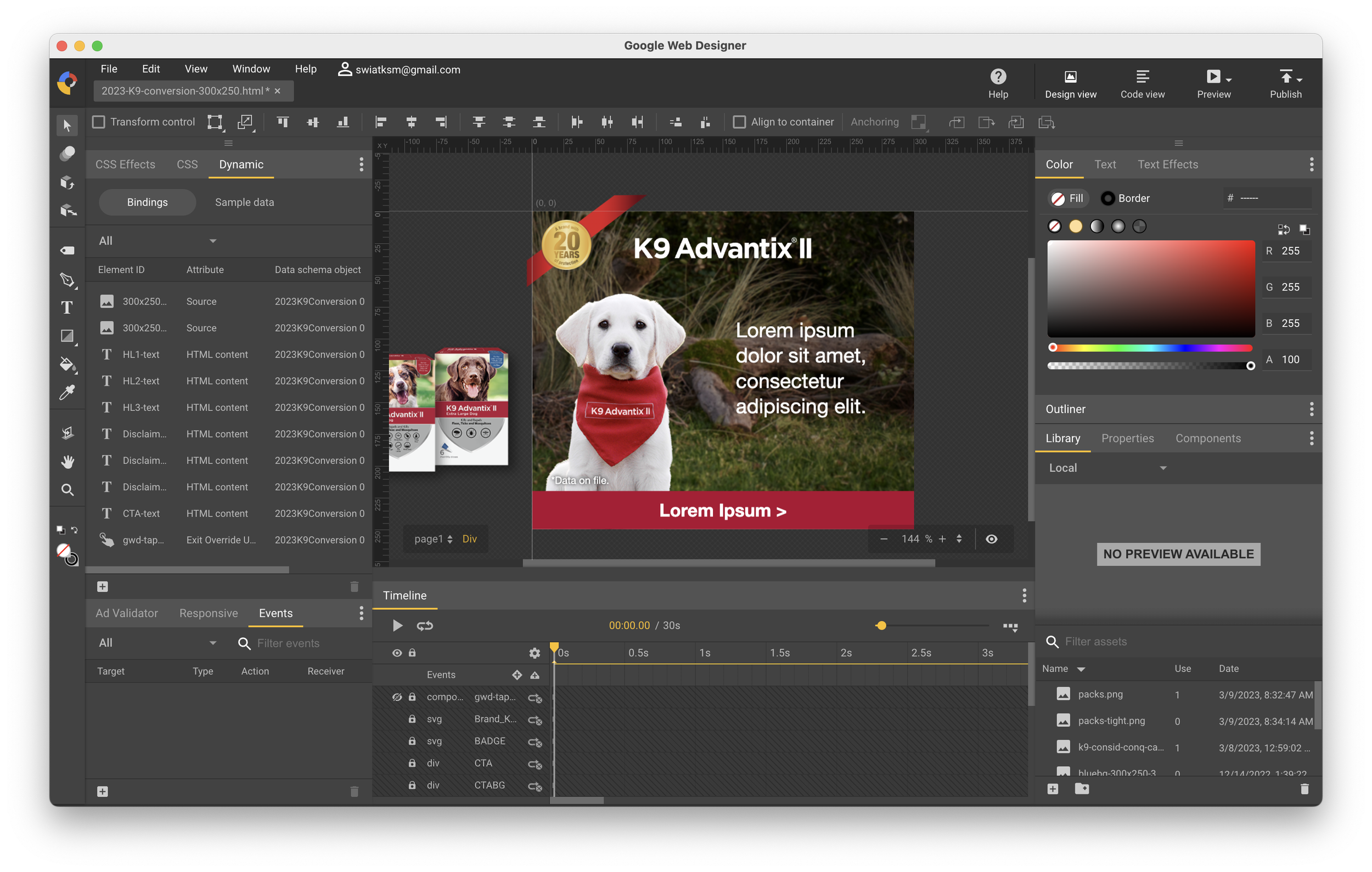 2. Created templates for each banner size in Google Web Designer and linked each piece of dynamic creative to an excel document listing every copy/design option.